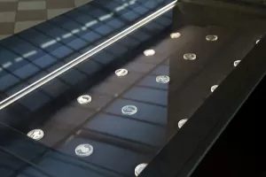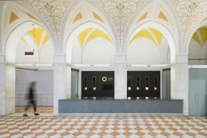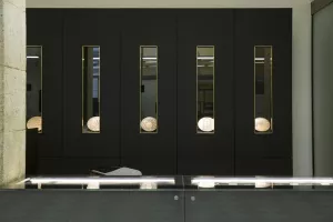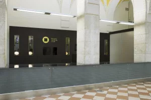 Interijer nove trgovine Hrvatskog novčarskog zavoda uredio je arhitektonski ured BIRO. Pri uređenju prostora poseban naglasak je stavljen na transparentnost površina i postojanost monumentalnih elemenata koje definiraju trgovinu.