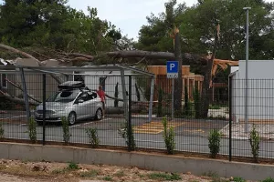 Kroz ovaj Falkensteinerov projekt vrijedan 9 milijuna eura prohujalo je gmrljavinsko nevrijeme praćeno snažnim vjetrom i desetkovalo drveće koje okružuje raskošan kamp, a oštećeno je i nekoliko kućica. Čitatelji su nam poslali fotografije na kojima su vidljive posljedice meteorološkog hira koji se iskalio nad Zadrom.