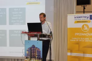Ákos Szépvölgyi, direktor Agencije za inovacije u srednjem Podunavlju i vodeći partner projekta PPI2Innovate iz Mađarske, pobliže je predstavio projekt i javnu nabavu inovativnih rješenja.