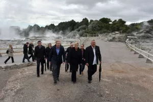 Predsjednica je potom s novozelandskim ministrom trgovine gospodinom Toddom McClayem posjetila izvor gejzira Te Puia u Rotorui te je tom prigodom izmijenila iskustva u turizmu koji je najveća izvozna grana obiju država. Naglasak u razgovoru bio je na važnosti očuvanja prirodnih ljepota te tradicijskih vještina obrade drveta koje pridonose očuvanju postojeće baštine i izradi autohtonih suvenira.