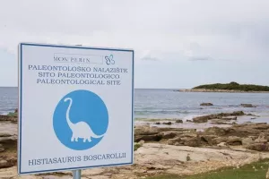 Baljanski kamp 'Mon Perin' jedinstven je i po još jednoj stvari: na sredini glavne plaže nalazi se značajno nalazište okamenjenih kostiju dinosaurusa, stare oko 200 milijuna godina. Pronađene su, odnosno izronjene s dna mora 1992. godine i jedino su nalazište fosila u Istri, kao i jedino nalazište u Europi koje je na morskom dnu, odnosno ispod razine mora. Gosti 'Mon Perina' tako mogu plivati i roniti pored samog nalazišta Histriasaurusa boscarollija, a njegove preparirane ostatke kostiju i pogledati u Muzeju dinosaurusa u Balama.