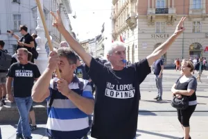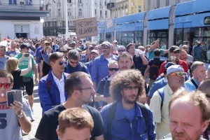 Oko tisuću nezadovoljnih radnika Uljanika i 3. maja stiglo je oko 11,30 sati na Markov trg, gdje počinje prosvjed pred Banskim dvorima, sa zahtjevima za ostavkom Uprave Uljanik grupe i isplatom srpanjskih plaća.