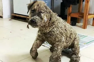Ljepilo je djelovalo poput cementa i Pascal je bio toliko 'zacementiran' da je mogao pomicati samo jezik. U skloništu su mu obrijali ono što je nekada bilo krzno zajedno s grančicama i blatom koje je tamo zaglavilo. Zbog kemikalija u industrijskom ljepilu koža mu je bila nadražena i puna rana. Tako da je štene moralo proći kroz niz medicinskih tretmana i posebnih kupki za oporavak.