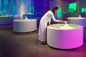 4. Pripadnost: U ovoj sobi posjetitelji mogu iskusiti kako će, kroz kontinuiranu interakciju s ljudima, roboti evoluirati i intelektualno i emocionalno. Počevši razumijevati ovaj simbiotički odnos, posjetitelji mogu zamisliti budućnost u kojoj će roboti izgledati kao da su živi.