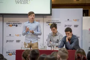 Povodom Svjetskog tjedna novca Hrvatska narodna banka u suradnji s Hrvatskim debatnim društvom organizirala je veliku učeničku debatu na temu 'Euro u Hrvatskoj – ZA ili PROTIV?'.