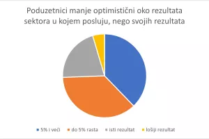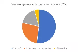 Nadalje, 37,8 posto ispitanika očekuje da će sektor u kojem posluju u 2025. godini ostvariti rast od pet ili više posto, 36,6 posto očekuje rast manji od pet posto, 21 posto očekuje stagnaciju svog sektora, a 4,6 posto očekuje pad u svom sektoru u 2025. godini. Prošle je godine 40,5 posto ispitanika očekivalo rast veći od pet posto, 35,5 posto rast do pet posto, 16,5 posto ispitanika je očekivalo stagnaciju, a 7,4 posto ispitanika je očekivalo pad u sektoru u kojem posluju.