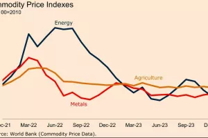 Cijene energije pale su 6,3 posto u prosincu, predvođene europskim prirodnim plinom (-20,6 posto) i naftom (-6,9 posto). Cijene neenergetskih energenata pale su za 1,6 posto. Cijene poljoprivrednih proizvoda pale su za 1,2 posto. Cijene hrane pale su za 3 posto, budući da je povećanje žitarica od 2,2 posto bilo uravnoteženo padom ulja i krupice od 4 posto. Pića su poskupila za 5,3 posto, dok su sirovine porasle za 1,1 posto. Gnojiva su pala 24 posto. Cijene metala porasle su 1,2 posto, predvođene željeznom rudom (+4,6 posto) i bakrom (+2,6 posto); cijene olova pale su 7,4 posto. Plemeniti metali porasli su 2,1 posto, predvođeni platinom (+3,3 posto) i zlatom (+2,1 posto).