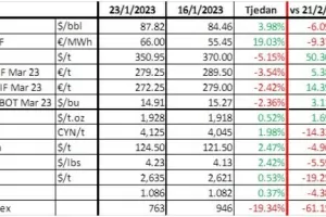 Na strani ponude, EU i G7 članice će od veljače postaviti gornju granicu na rafinirane proizvode iz Rusije, što će se nadovezati na već postojeće limite na cijenu sirove nafte koji su na snazi od prosinca prošle godine. Osim toga, članice OPEC+ će nastaviti svoju politiku smanjenja ponude tijekom cijele 2023. Plinom se na burzi TTF ponovno trguje iznad 65 eura po megavat satu, nakon što je tijekom prošlog tjedna u jednom trenutku cijena pala na skoro 50 eura po megavat satu.