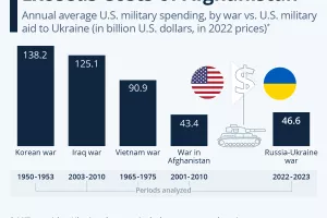 Kada se izračunaju prosječni godišnji troškovi (u cijenama iz 2022.) prethodnih ratova u kojima su Sjedinjene Države bile uključene, može se vidjeti stvarna veličina izdataka. Naime, isplate Ukrajini već su premašile godišnje vojne izdatke SAD-a u ratu u Afganistanu koji je trajao devet godina, točnije od 2001. do 2010. Znači u manje do dvije godine, SAD je premašio gotovo deset godina rata u Afganistanu.