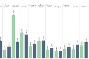 Odnos ponude i potražnje u Gradu Zagrebu uglavnom je ujednačen, no u gradskim četvrtima koje su najviše oštećene potresom i dalje je vidljiv nesrazmjer. Gornji grad – Medveščak nosi najveći dio ukupne ponude stanova u Zagrebu (17%), no potražnja za njima iznosi tek približno 7 posto. Slična je situacija u četvrtima Črnomerec, Donji grad i Maksimir, dok kod ostalih uočavamo veći indeks potražnje nego ponude. Ono što je zajedničko svima jest povećanje cijena u odnosu na prethodnu godinu pa je tako cijena kvadrata stanova u prosjeku porasla za 16% i sada iznosi 2.593 EUR, dok je cijena kvadrata kuća porasla za 10 posto i iznosi 1.555 EUR.