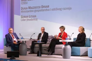 – Dvije trećine CO2 Hrvatske pošte dolazi iz cestovnog prijevoza, naš vozni park je veliki i ima 1300 vozila kojima smo prošle godine prešli 47 milijuna kilometara i ispustili stotine tisuća tona CO2. Zbog toga smo nabavili električne bicikle i mopeda, te 158 električnih automobila, a energetski učinkovitim vozilima uskoro namjeravamo zamijeniti deset posto našeg voznog parka – rekla je Terezija Gelo. Puno je projekata između gradova i poduzetnika začeto na ovim skupovima, naglasio je Litvan te predložio suradnju Hrvatske pošte s tvrtkom Rasco, koja ne sudjeluju svojim vozilima u javnom gradskom prijevozu, ali proizvodi različite tipove vozila potrebnih gradovima i tvrtkama. Prema riječima Miroslava Paviše iz Rasca, ta je tvrtka 2016. pokrenula projekt razvoja prvoga električnog vozila, čistilice koja je stavljena na tržište 2020. i već je izvezla osamnaest takvih strojeva što je zasad najveća prodaja električnih čistilica u svijetu. Na panelu o energetskim izazovima i klimatskim promjenama na Litvanovo pitanje hoće li vikendice prvi red do mora izgubiti na vrijednosti, Dunja Mazzocco Drvar iz Ministarstva gospodarstva i održivog razvoja odgovorila je da je to retoričko pitanje, ali da se ekstremi sve češće pojavljuju pa i podizanje razine mora. Prema riječima Mazzocco Drvar, iako su klimatske promjene sporo događajući proces i poslovni sektor i građani svjesni da je dekarbonizacija rješenje za smanjivanje štetnih posljedica klimatskih promjena. Građani Križevaca probleme klimatskih promjena rješavaju gradnjom obnovljivih izvora energije, elektrana u projektu ZEZ u koje ulažu vlastiti novac. Dosad je oko pedeset Križevčanina uložilo novac u te elektrane, a prema riječima Danijela Šaška, zamjenika gradonačelnika, trenutačno je u tijeku izgradnja velike elektrane snage pet MW. S elektranom u gradnji i već postojećim Križevci će dobivati 12 posto od ukupno potrebne energije, a isplativost takvih elektrana, ako nisu sufinancirane, je za deset -petnaest godina.Šaško je također upozorio da manji gradovi imaju nerazvijenu infrastrukturu i teško je balansirati između toga hoće li financirati sadnju drveća ili gradnju vodovoda.