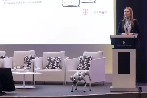 Predavačima i panelistima na konferenciji se pridružio i neočekivani gost – robot-pas imena Živko. Marijana Bogdanović, business development menadžerica u Combisu, u njegovom je društvu objasnila da se pametni gradovi sastoje od više slojeva, a to su infrastruktura, sigurnost i digitalizacija.