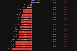 Svi ostali su u minusu. Najbliže ravnoteži su Bugarska s minusom od samo dva posto i Danska s minusom od sedam. Prosjek EU-27 iznosi minus 20 posto, francuski 23 posto, dok su Srbija i Crna Gora na oko 25 posto minusa. Austrijski umirovljenici bilježe manjak od 17 posto, a njemački čak 33 posto.
