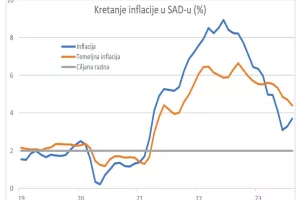 Inflacija potrošačkih cijena u SAD-u u kolovozu porasla je za pola postotnog boda na 3,7 posto godišnje, vođena povećanjem cijena energenata (naftnim derivatima). Za kamatnu politiku, ona ‘bitnija’ mjera temeljne inflacije (bez cijena hrane i energenata), pada već peti mjesec za redom na 4,3 posto u kolovozu s 4,7 posto u srpnju. Pritom veseli da je rast troškova stanovanja, a što je najvažnija stavka osobne potrošnje u SAD-u, usporio pa je godišnja stopa pala na 7,8 posto u odnosu na 8,8 posto zabilježenih proljetos, navodi Hrvatska udruga poslodavaca u ovotjednoj analizi.