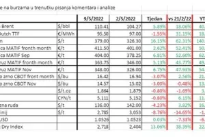 Cijena nafte u petak zatvorena na najvišoj razini u protekla tri tjedna, 112,5 $/bb kao posljedica obećanja članica G7 zemalja da će zabraniti uvoz ruske nafte, ali i smanjenje službenih cijena nafte Saudijske Arabije za kupce u Aziji te lockdown koji je na snazi u dijelovima Kine, a što utječe na njihovu potrošnju/potražnju. Na razini EU planirane su sankcije za uvoz nafte, ali to se tek treba potvrditi jer se pojedine zemlje poput Mađarske tome snažno protive.