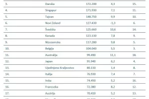 Također, suprotno općem trendu, rast obveza porastao je u 2023. na 9,5 posto, što je najbrži rast od uspješnijih vremena prije globalne financijske krize. Međutim, s 32 posto, udio duga i dalje je 10 postotnih bodova ispod razine u to vrijeme. Na kraju, neto financijska imovina porasla je za 6,7 posto. S neto financijskom imovinom po stanovniku od 16.410 eura, Hrvatska je ostala na 34. mjestu ljestvice najbogatijih 20 zemalja.