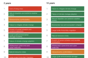 Troškovi života dominiraju globalnim rizicima u sljedeće dvije godine, dok neuspjeh klimatskih mjera dominira sljedećim desetljećem, kaže izvješće. Kriza troškova života rangirana je kao najteži globalni rizik u sljedeće dvije godine, a vrhunac će doseći u kratkom roku. 'Gubitak bioraznolikosti i kolaps ekosustava' smatra se jednim od globalnih rizika koji se najbrže pogoršavaju u sljedećem desetljeću, a svih šest ekoloških rizika nalazi se među 10 najvećih rizika u sljedećih 10 godina. Devet rizika predstavljeno je u prvih 10 ljestvica kratkoročno i dugoročno, uključujući 'Geoekonomski sukob' i 'Eroziju društvene kohezije i društvenu polarizaciju', uz dva nova sudionika na ljestvici najvišeg ranga: 'Široko rasprostranjeni kibernetički kriminal i kibernetička nesigurnost' i 'Nedobrovoljne migracije velikih razmjera'.