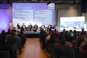 14. susret gradonačelnika i poduzetnika. Panel o upravljanju imovinom: Nives Kopajtich Škrlec, Dominik Živanović, Marko Filipović, Ivan Paladina, Mato Franković, Željko Turk i Miodrag Šajatović