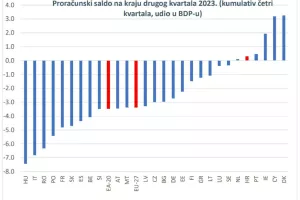 Na kumulativnoj razini u posljednja četiri kvartala, Hrvatska je na kraju trećeg kvartala ove godine ponovo u zoni proračunskog suficita (0,3 posto BDP-a), po čemu je među pet najboljih članica EU. S obzirom na snažno ubrzanje (realnog) rasta osobne potrošnje, za očekivati je da će se suficit proračuna iznositi blizu 1 posto BDP-a za cijelu 2023. godinu. Analitičari FocusEconomicsa su donedavno u 2023. očekivali deficit od oko 1 posto BDP-a, što znači da su javne financije u znatno boljem stanju nego se očekivalo.