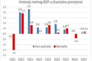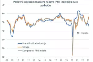 Shodno tome, očekuje se da bi godišnja stopa rasta BDP-a u euro području u drugom kvartalu mogla čak ubrzati na 2 posto nakon očekivanog rasta od 1,5 posto godišnje u prvom kvartalu. Samim time jasno je da je na prijelazu iz prošle u ovu godinu izbjegnuta recesija. Istovremeno, daljnji pad PMI indeksa za prerađivačku industriju ispod 50 bodova upućuje na recesiju u spomenutom sektoru. Spomenuto podcrtava rast subindeksa trajanja isporuka čak iznad razina iz recesije 2009. godine, što upućuje na vrlo slabu potražnju za industrijskim dobrima.
