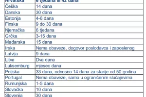 U baltičkim zemljama te Slovačkoj na teret poslodavca pada svega 10 dana, dok su Bugarska i Rumunjska još znatno niže na tri, odnosno pet dana.