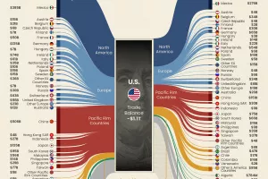 Najveći trgovinski deficit nedvojbeno je s Kinom, koja čini više od 32 posto američkog trgovinskog deficita robom. Deficit od 355 milijardi dolara s Kinom dolazi od uvoza robe od 506 milijardi dolara kao što su strojevi i namještaj. Zanimljivo je da mnoge od tih uvoza obavljaju američke tvrtke koje su svoju proizvodnju prebacile upravo u Kinu. Ove aktivnosti vanjskih izvršitelja računaju se kao uvoz iako stvaraju profit za te američke tvrtke.