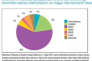 Nacionalna referentna stopa (NRS) najzastupljeniji je referentni parametar za vezanje kamatnih stopa na kredite kućanstvima (67 posto), dok je 18 posto kredita vezano uz EURIBOR. Europska središnja banka je započela s restriktivnom monetarnom politikom te se ubrzo očekuje i prvo podizanje ključnih kamatnih stopa, što će se s vremenskim odmakom reflektirati i na kamatne stope u Hrvatskoj. Središnje banke, pa tako i EBC, održavaju stabilnost cijena i utječu na inflaciju određivanjem kamatnih stopa. Kada središnja banka želi spriječiti previsoku inflaciju, obično poveća kamatne stope kako bi bilo skuplje zaduživati se, a privlačnije štedjeti.