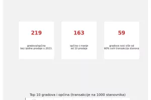Obalni gradovi prodajom stanova po stanovniku nadmašuju New York i Madrid, dok u 219 gradova lani nije prodan nijedan stan