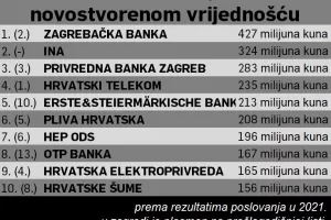 Na listi 500 najboljih kompanija koju objavljujemo u istoimenoj publikaciji u suradnji s Dunom & Bradstreetom, među deset najvećih stvaratelja nove vrijednosti najzastupljenije su banke.