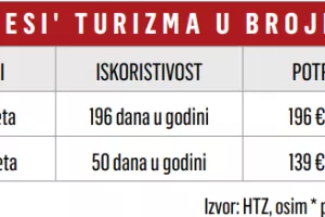 To nije strašno zbog dodatne zarade iznajmljivača, kojom vlast kupuje glasove, nego zato što su prema posljednjim podacima o turističkoj potrošnji (za 2022.) turisti u kampovima trošili najmanje: 84 eura na dan, u obiteljskom smještaju 139 eura na dan, a u hotelima 195 eura (u onima s četiri i pet zvjezdica 222 eura). Dodajmo tomu i iskoristivost kapaciteta. Prošle je godine jedan turistički krevet u prosjeku bio popunjen 85 dana u godini, mjesta u kampovima 'radila su' 89 dana, 'cimerfraj' samo 50 dana, a hotelski krevet 196 dana. Iz svega toga proizlazi da je udjel dvaju udarnih ljetnih mjeseca (srpnja i kolovoza) u ukupnom broju noćenja od 2016. do 2023. porastao s 53 posto na gotovo 57 posto! Produljenje sezone – u svjetlu održivosti svakoga jadranskog naselja i klimatskih promjena – zato ostaje tek načelno opredjeljenje jer je ekspanzivan obiteljski smještaj orijentiran prije svega na špicu sezone.
