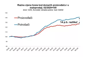 – Desetljećima politički njegujemo lakši pristup uvozu hrane umjesto poticanja samodostatnosti. Razina cijena hrane je do 2022. išla ruku pod ruku od domaćih proizvođača do potrošača, da bi se nakon toga počelo događati veliko razdvajanje. Naime, cijena hrane kod domaćih je proizvođača vrlo slabo rasla ili čak stagnirala, a cijene koju plaćaju potrošači nastavile su rasti. To znači da domaći proizvođači u Hrvatskoj više ne diktiraju cijenu hrane na policama u maloprodaji te ukazuje na to da nacionalne politike nisu napravile puno za krajnjeg potrošača, odnosno strateškim poticanjem vlastite proizvodnje. I to je glavni uzrok problema – kategoričan je Odrčić dodajući da će stoga cijene i u bliskoj budućnosti nastaviti rasti, a ne padati, što god tko iščitao iz kretanja cijena u vrijeme bojkota.