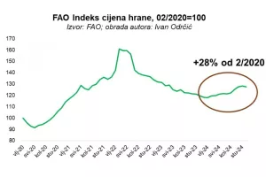 Krajnji je rezultat svega toga – 28 posto veća razina globalnih cijena hrane u odnosu na početak pandemije. Kako na to ne možemo utjecati stižemo do najvažnijeg problema zbog kojeg imamo visoku razinu cijena hrane u trgovinama. Mi nismo samodostatni u velikom dijelu prehrambene proizvodnje! Ne samo to, Hrvatska ima najveći deficit trgovinske razmjene prehrambenim proizvodima u cijeloj regiji, otprilike 2,7 posto BDP-a! Slovenija je na -1,6 posto, dok je Srbija u suficitu od oko jedan posto BDP-a. I ne samo što daleko više uvozimo nego izvozimo hrane, već se taj trend naglo pogoršava od početka 2022. godine. U Hrvatskoj nije oportuno proizvoditi ili velike količine hrane gdje se to može ili hranu visoke dodane vrijednosti. I dokle god državne politike ne urede takvo stanje na način da se isplati proizvoditi hranu i/ili izvoziti je, taj će se deficit nastaviti pogoršavati, a s kontinuiranim pritiskom turističke potražnje koja će još više doprinijeti rastu cijena hrane – precizira Odrčić.