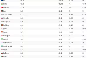 Iza Kine su skupno zemlje Europske Unije, koje su uvezle 18.4 milijarde dolara fosilnih goriva u omjeru 60/40 sirove nafte i prirodnog plina. Jedino što EU ne uvozi iz Rusije je ugljen, i to te kod kolovoza 2022. godine.