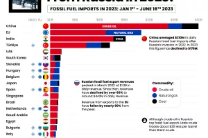 Turska je druga nacija koja je 2023. godine uvezla ruskih fosilnih goriva u vrijednosti većoj od 10 milijardi dolara, dok je svaka druga zemlja ove godine iz Rusije uvezla goriva u vrijednosti manjoj od 3 milijarde dolara.