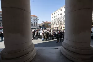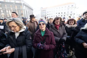Nakon pet minuta šutnje, točno u podne, okupljeni su zvižducima poručili da je vrijeme šutnje završilo.