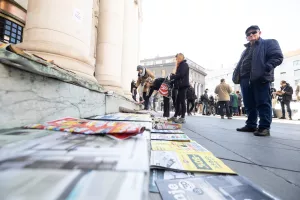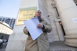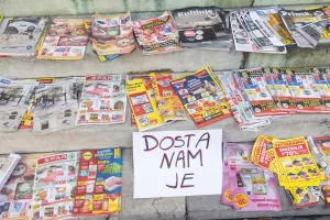 Ispred HNB-a okupilo se oko stotinu prosvjednika. Na prostor ispred ulaza u središnju banku prosvjednici su poslagali promotivne letke sa sniženjima, poručujući kako nije riječ o pravim sniženjima.