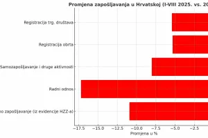 Iako u Hrvatskoj nikada nije bilo više zaposlenih, čini se da tržište rada pokazuje prve znakove hlađenja. Prema podacima Hrvatskog zavoda za zapošljavanje (HZZ), u prvih osam mjeseci ove godine iz evidencije nezaposlenih izašlo je 105.411 osoba, što je 10,9 posto manje nego u istom razdoblju 2024. godine.