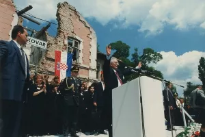 No usporedno s geopolitičkim povratkom u Europu, u Hrvatskoj je napredovao i proces nacionalne pogubljenosti, društvene i kulturne regresije, banalizacije politike i države, zbog kojih završnica Tuđmanova govora zvuči kao romantičarski poziv iz daleke prošlosti: