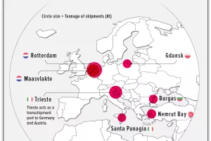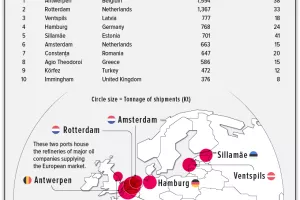 Što se tiče isporuke naftnih derivata, glavno odredište su bile ogromne luke u Rotterdamu i Antwerpenu u kojima se nalaze velike rafinerije, a neke su pošiljke svoje odredište našle i u Mediteranu.
