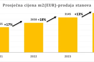 Podatci pokazuju kontinuirani rast traženih cijena stambenih kvadrata u svim županijama uz izuzetak Virovitičko-podravske koja bilježi pad od 3 posto za tražene cijene kvadrata stana. Prosječna tražena cijena kvadrata stana u 2024. godini iznosila je 3.543 eura što je rast od 12,66 posto u odnosu na prosječno traženih 3.145 eura u 2023. godini. Usporedno s 2022. kada je prosječna tražena cijena iznosila 2.658 eura po kvadratu stana rast je značajnih 33,3 posto.