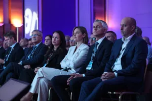 Okupljenima u prepunoj Kristalnoj dvorani zagrebačkog hotela Westin obratila se i Irena Weber, glavna direktorica Hrvatske udruge poslodavaca koja se u svom govoru fokusirala na nedavno predstavljeno Izvješće o konkurentnosti europskog gospodarstva čiji je autor Mario Draghi, nekadašnji čelnik Europske središnje banke. Draghi je naglasio tri glavna područja, a to su premošćivanje inovacijskog jaza sa SAD-om, zatim dekarbonizaciju te ulaganje u sigurnost.