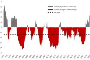 Graf 4: 1-godišnja korelacija između S&P 500 indeksa i 10-godišnjih američkih obveznica na temelju mjesečnih povrata