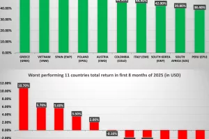 Među deset najbolje rangiranih tržišta po ukupnim povratima (uključujući dividende), dominiraju europske burze. Grčka i Španjolska ostvarile su rast veći od 50 posto, dok je Austrija napredovala 51,3 posto, Poljska čak 54,5 posto, a Italija 44,4 posto. Takvi rezultati signaliziraju rastuće povjerenje ulagača u europsko gospodarstvo, koje profitira od nekoliko ključnih čimbenika, smanjenih kamatnih stopa, snažnijih infrastrukturnih ulaganja, povećane obrambene potrošnje te povoljnih uvjeta za izvoznike.