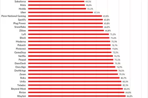 Kao što je vidljivo, u ovoj neslavnoj tablici nalaze se i dvije dionice iz poznate FAANG skupine dionice. Akronim "FAANG" odnosi se na dionice pet istaknutih američkih tehnoloških dionica (Facebook, Amazon, Apple, Netflix, Google) poznatih po impresivnim stopama rasta koje su pokazale u posljednjim godinama. Vrijednost dionica Mete, vlasnika Facebooka, (FB), prepolovila se, a streaming pružatelj Netflix (NFLX) izgubio je tri četvrtine tržišne kapitalizacije.