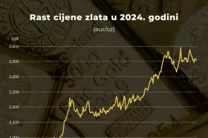 Cijena zlata izražena u eurima u 2024. godini porasla je za gotovo 35 posto, što je ulagačima u zlatne poluge i zlatnike donijelo pozamašnu zaradu te sačuvalo vrijednost novca od negativnog učinka inflacije.