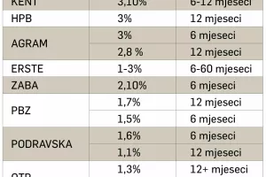 Raiffeisen banka pak nudi kamatu od 1,50 posto na rok od godinu dana te jedan posto na rok od šest mjeseci. Na kraju, Podravska banka nudi kamatnu stopu od 1,10 posto na rok od godinu dana te 1,60 posto na rok od šest mjeseci dok je Addiko banka s početkom srpnja krenula s povećanjem kamatnih stopa te danas nudi kamate od jedan posto na rok od godinu dana.