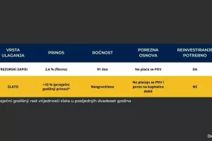 U svijetu ulaganja često se raspravlja između sigurnosti i potencijala, a svakom ulagaču cilj je pronaći najbolji omjer između ova dva faktora koji u konačnici utječu na donošenje investicijske odluke. Uzme li se u obzir faktor sigurnosti, ulagačke opcije koje se nameću su trezorski zapisi te investicijsko zlato. Iako obje investicije imaju nizak rizik od gubitka ulaganja, svaka od njih ima svoje specifičnosti. Trezorski zapisi nude pouzdan, ali ograničen povrat, dok investicijsko zlato kombinira dugoročnu zaštitu vrijednosti sa znatno višim prinosima.