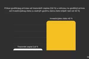 Zlato donosi 17 puta veću zaradu od trezorskih zapisa