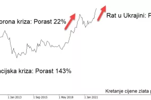 Kako se kreće cijena zlata? I o čemu ona ovisi? Kokanović veli da će tijekom ove godine kretanje cijene zlata ponajviše ovisiti o ratu u Ukrajini. Ako je dogovor o miru izgledna opcija moguće je da cijena privremeno padne, a ako se rat, sankcije i inflacija uzrokovana porastom cijene nafte i plina nastavi, vjerojatno će cijena nastaviti polagano rasti. - No, ulaganje je u zlato dugoročna investicija i preporučuje se ulaganje na minimalno nekoliko godina. U tom će razdoblju inflacija odraditi svoje i cijena će gotovo sigurno porasti. U posljednjih 50 godina cijena je zlata u prosjeku rasla 8,3 posto godišnje.
