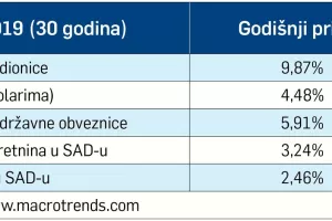 Prinos zlata dvostruko veći od globalnih dionica